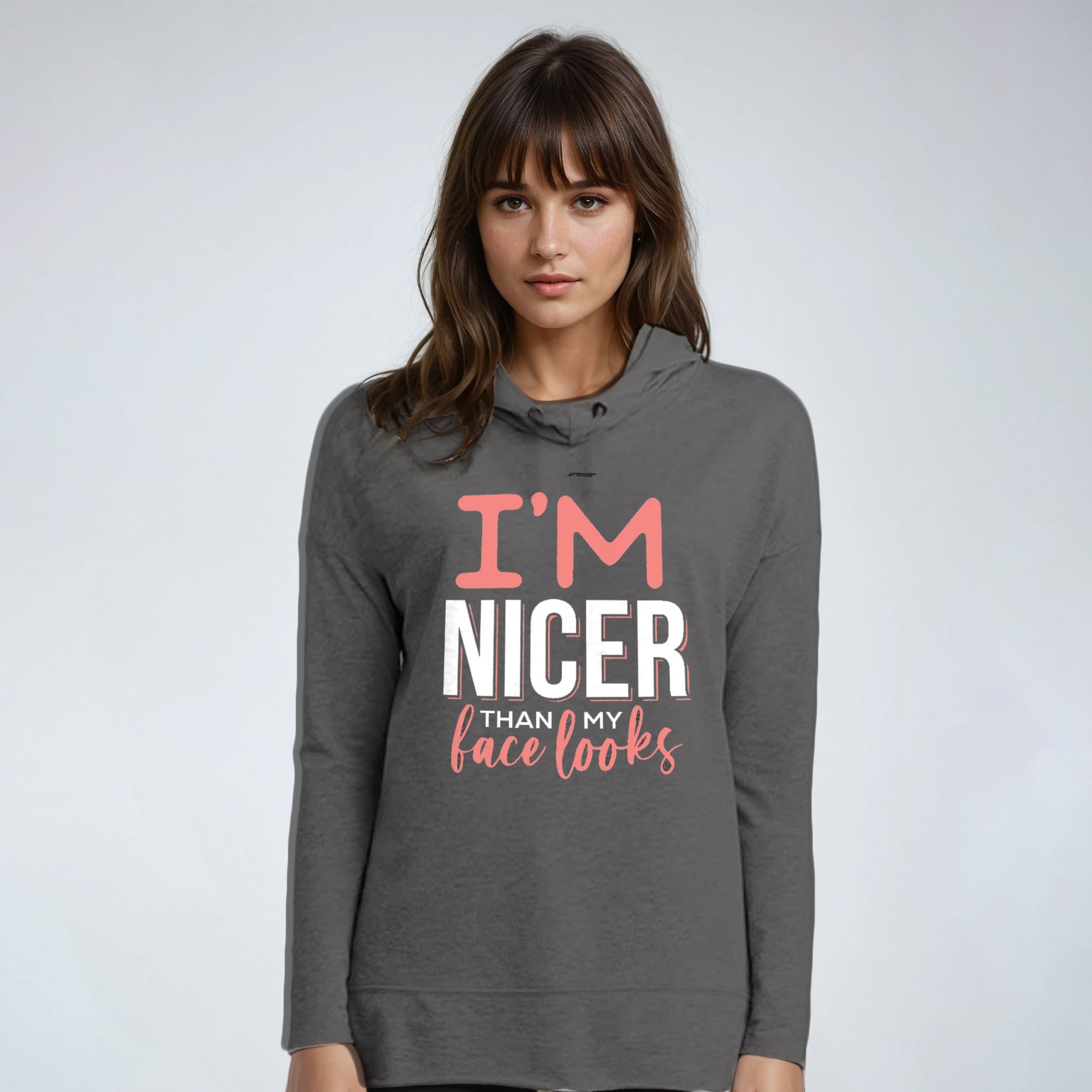 The design "I'm Nicer Than My Face Looks" is a bold yet uplifting statement that reminds you to embrace your true strength and kindness. At Fitness Tee Co., we believe in the power of self-confidence and encourage you to sweat your story. This design reflects that strength — owning who you are and showing the world that kindness and strength go hand in hand. Wear it proudly and let your story unfold.